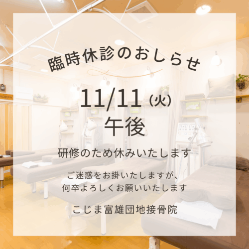 小島先生は様々な治療法に精通されており、患者様の症状改善のために日々努力をされておられるたいへん優秀な先生です。学会の講師もされていて、私も小島先生の講義を拝聴し勉強させて頂いています。お身体のことでお悩みがありましたら、ぜひ小島先生にご相談されてみてはいかがでしょうか?こじま富雄団地接骨院、同業の私も自信を持ってお勧めします!