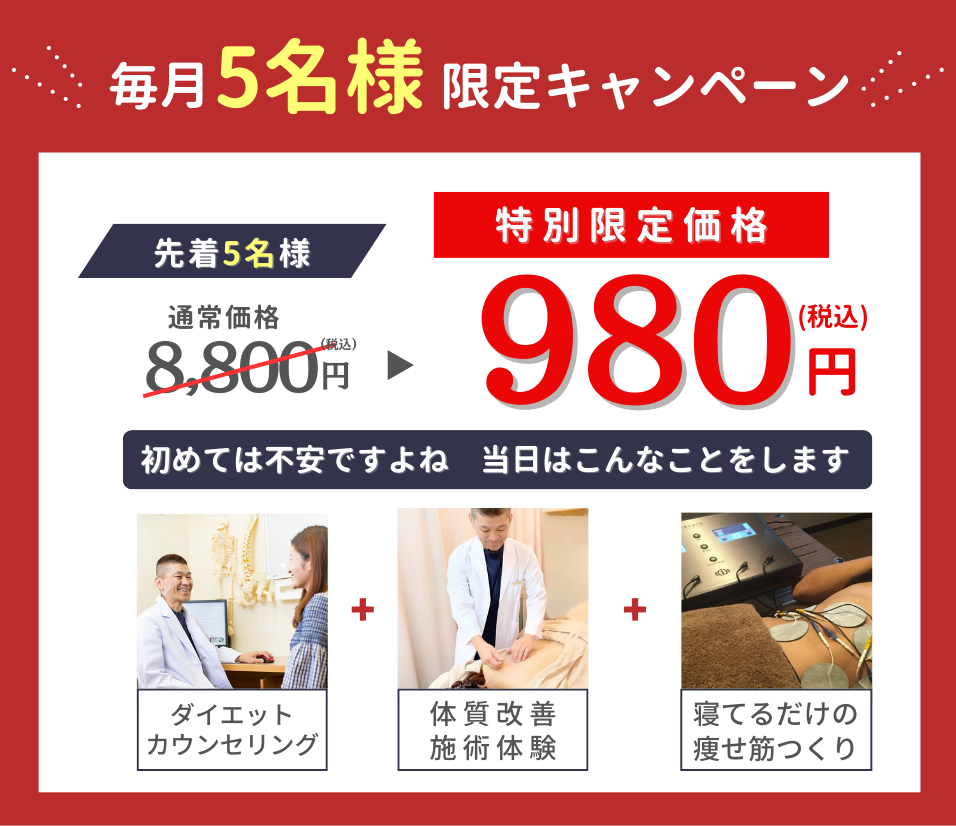 首こり・肩こり・腰痛・美容鍼・よもぎ蒸し・ダイエット・交通事故
