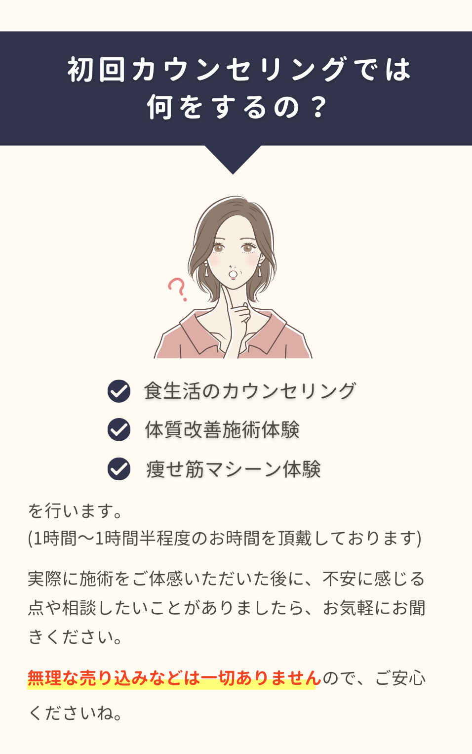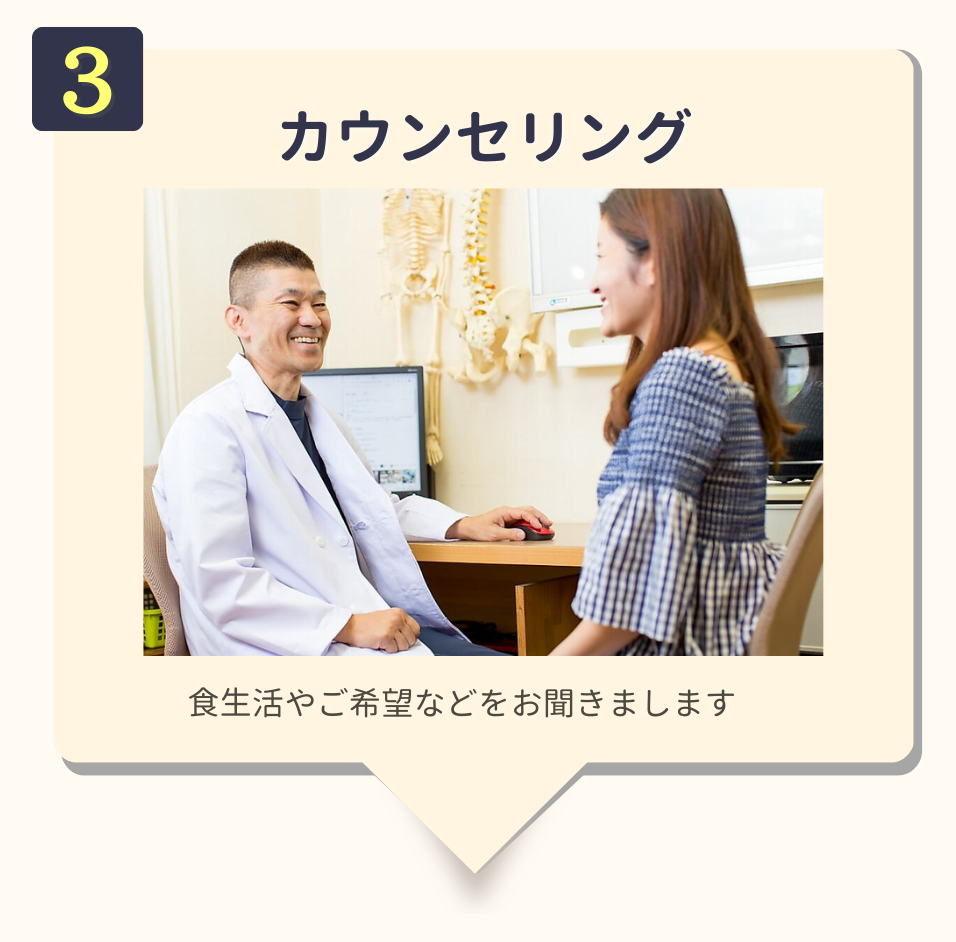 お客様にあった最適なプランを作成するため、カウンセリング後に案内させていただきます。